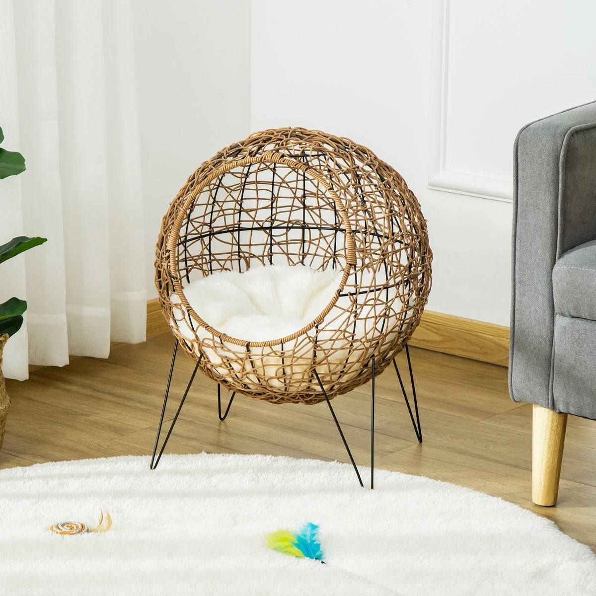 Geef je kat de ultieme ruimte om zichzelf te noemen met deze kattenmand . Het grote en ronde ontwerp biedt je huisdier veel ruimte binnenin en een groot gewatteerd kussen aan de onderkant, gemaakt van polyester en een katoenmix, zorgt voor veel comfort. Het frame is gemaakt van geweven staal en rotan, met gaten en een verhoogd ontwerp om lucht door te laten.