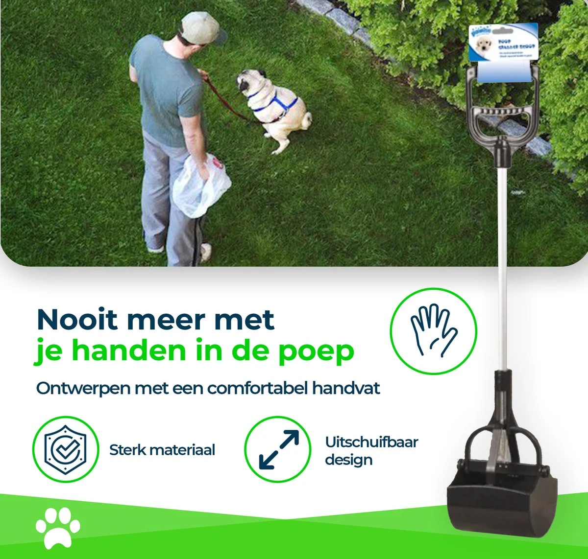 Pawise poepschepper helpt je gemakkelijk hondenpoep op te ruimen!