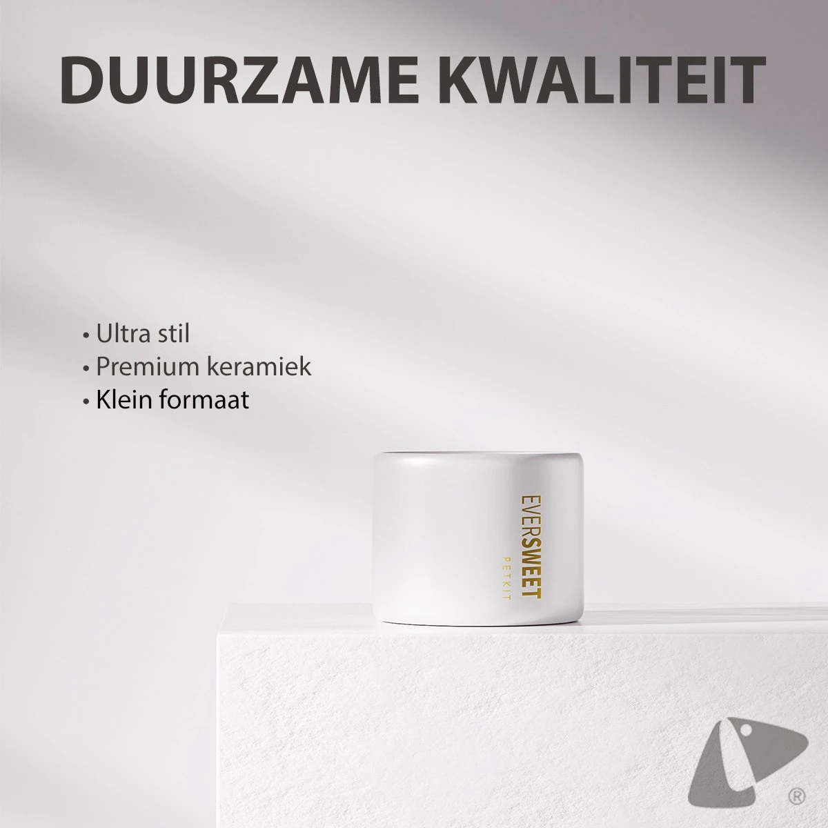 De Eversweet 5 Mini is gemaakt van premium keramiek wat BPA vrij is. Dit wordt geproduceerd door materialen op hoge temperatuur te branden. Voordelen van premium keramiek zijn brandwerendheid, gemakkelijk schoon te maken en het vermijdt bacterie verdeling. Dit is erg gunstig voor de gezondheid van uw kat en/of hond.