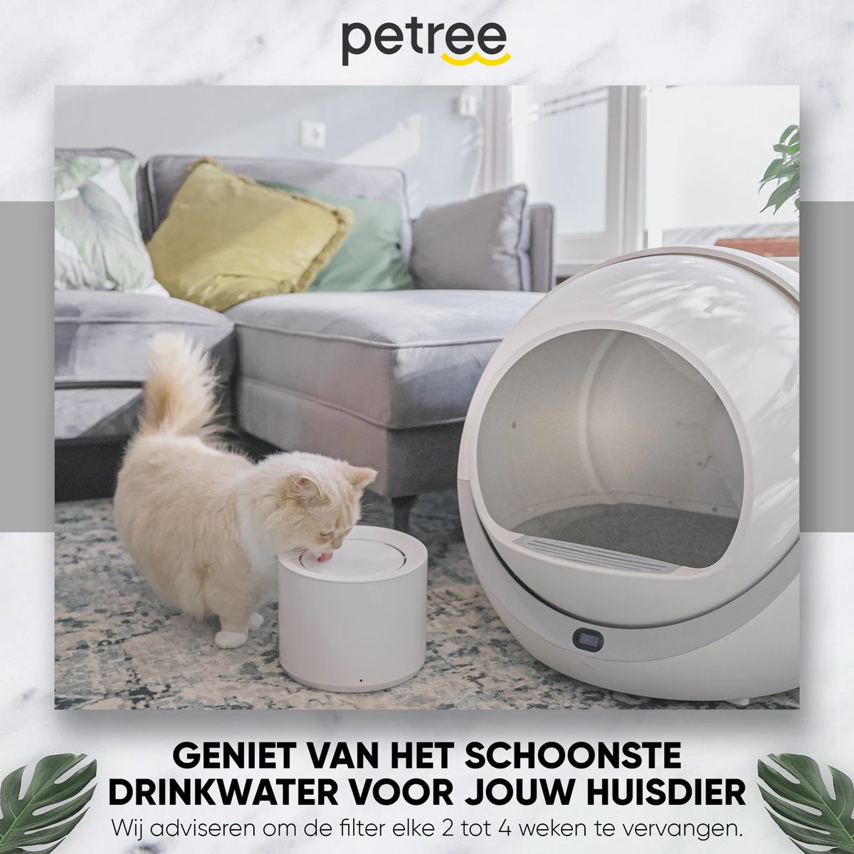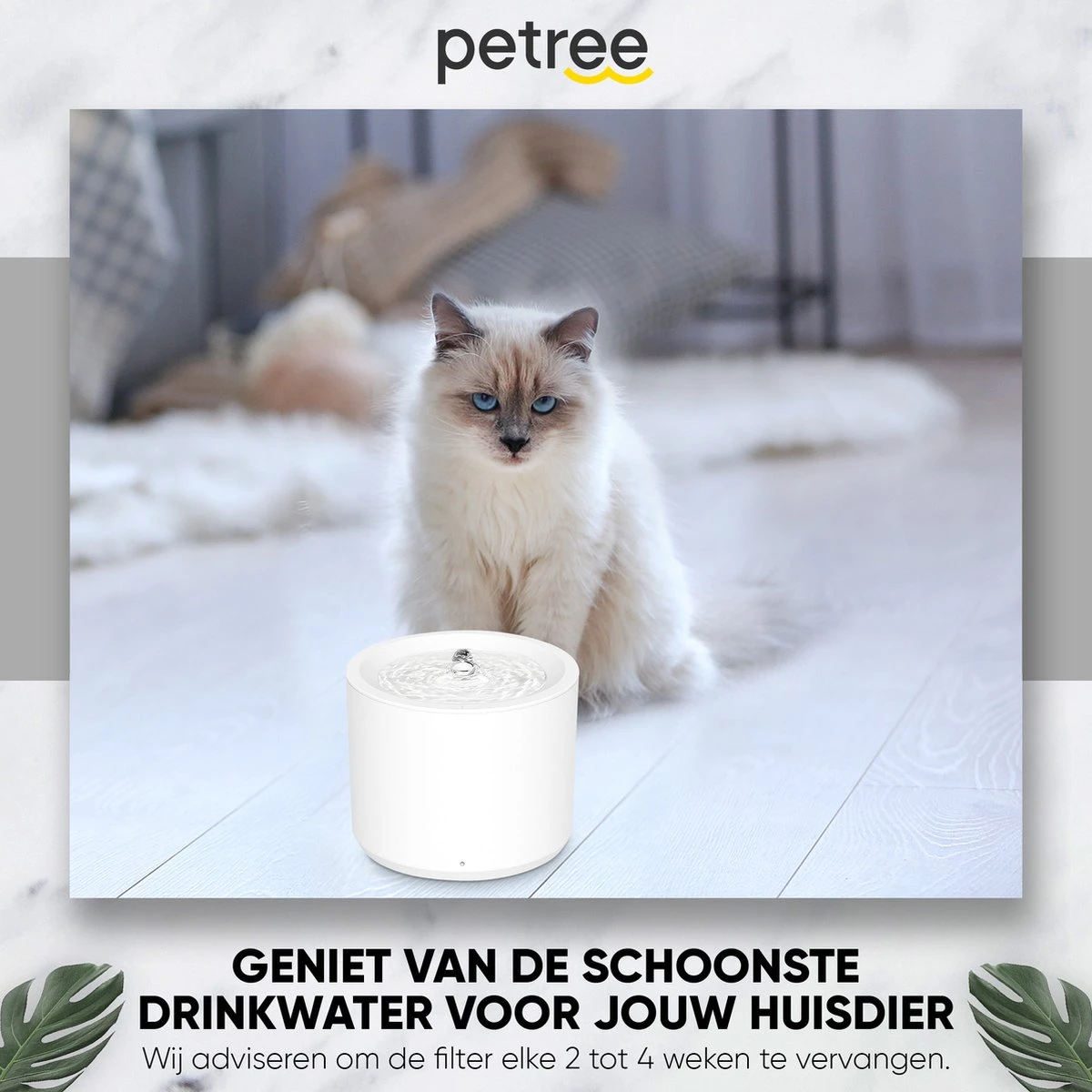 Navulling set met 3 reinigingsfilters voor de Petree drinkfontein. De filters bieden een 4-laags filtersysteem bestaande uit stevig polypropyleen, kokossnippers en geactiveerd koolstof. Middels het filter worden haren, viezigheid, smaakjes en geurtjes uit het water gefilterd. Zo heeft je huisdier altijd het meest verse en gezonde water!