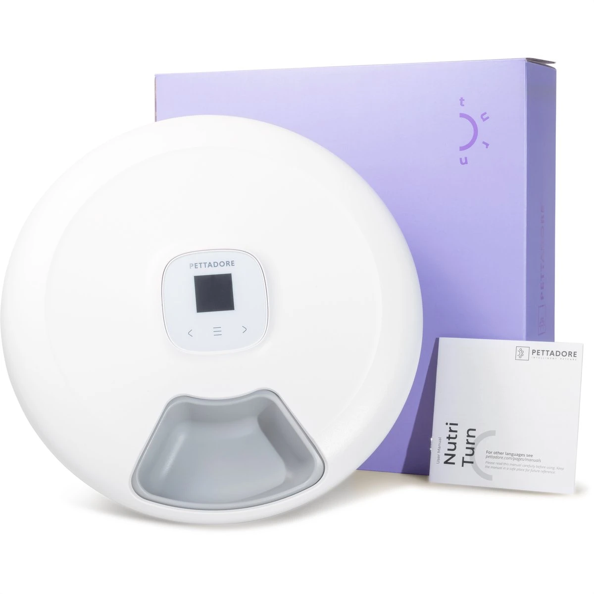 Met de Nutri Turn behoort dat tot het verleden. Dankzij de zes verschillende eetmomenten die de Nutri Turn beschikbaar stelt, krijgt jouw kat ook gezonde en gebalanceerde voeding wanneer jij niet thuis bent. Het enige wat jij hoeft te doen, ‘s ochtends voordat je de deur uitgaat, is het vullen van de slimme voerautomaat met nat- en droogvoer en gezonde tussendoortjes. De rest wordt voor je verzorgd.
