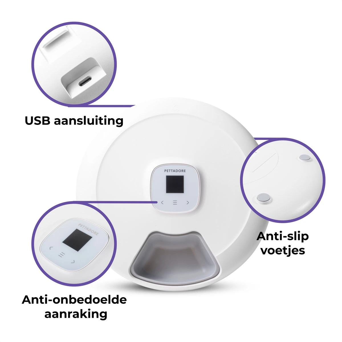 Wij, bij Pettadore, hebben deze automatische voerbak ontworpen met jou en je kat in gedachten. Wij weten als geen ander hoeveel vreugde het brengt om je kat gezond en gelukkig te zien. Daar hoort een gevarieerd eetpatroon bij. Op deze afgemeten manier voeden voorkomt bovendien overgewicht en zorgt ervoor dat je jouw kat zo lang mogelijk gezond bij je kan houden.