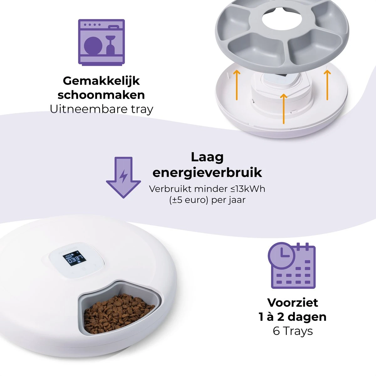 √ Inhoud voerreservoir: 6 trays van 170 ml