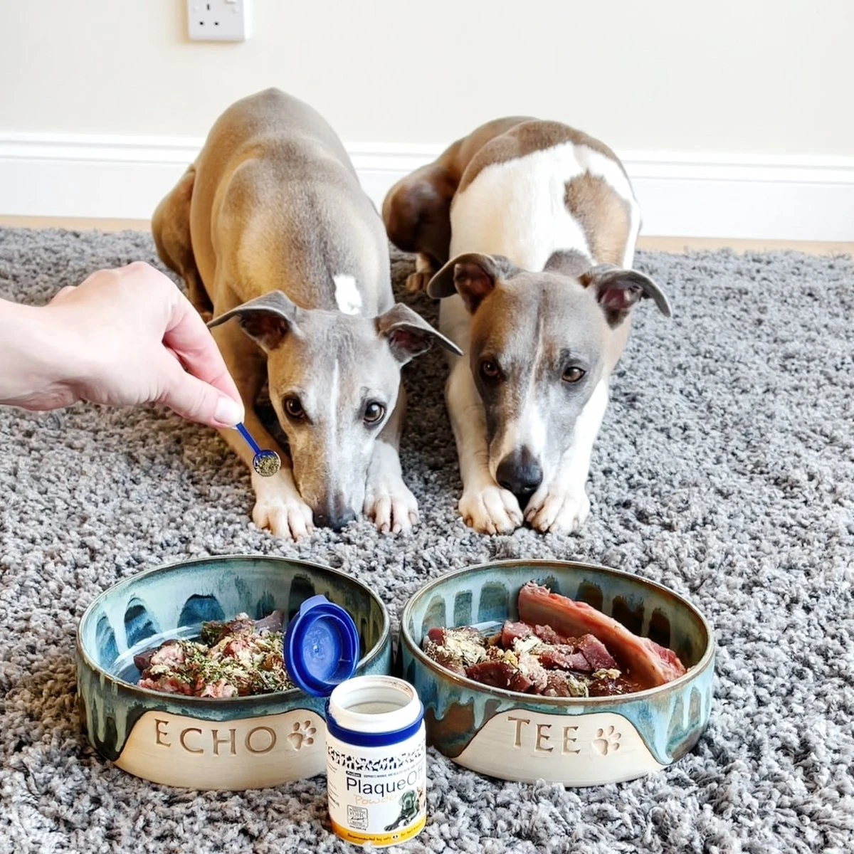 Veel baasjes komen niet voldoende toe aan de gebitsverzorging van hun hond of zien vaak op tegen het tanden poetsen van hun hond, ProDen PlaqueOff® is dan de perfecte oplossing. Het is gemakkelijk en effectief in gebruik: strooi het eenmaal daags over het voer van je hond en het ProDen PlaqueOff doet zijn werk.