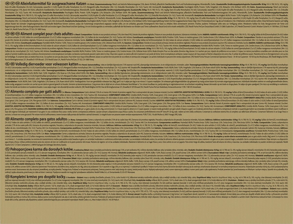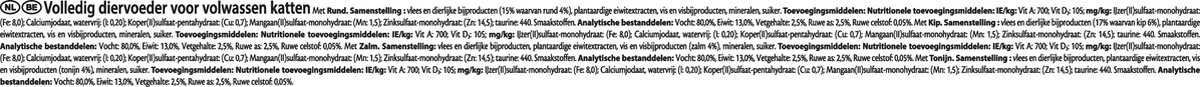Gourmet Perle Mini Filets in Saus kattenvoer bevat met aandacht geselecteerde ingrediënten die met zorg zijn bereid voor een verfijnde smaak. Gesneden fijne mini filets met kip, rund, konijn en zalm en geserveerd in een heerlijke saus om jouw kat te verwennen. Mini Filets in Saus van Gourmet Perle, eenvoudige en verfijnde creaties voor een onweerstaanbare smaakervaring, elke dag opnieuw.