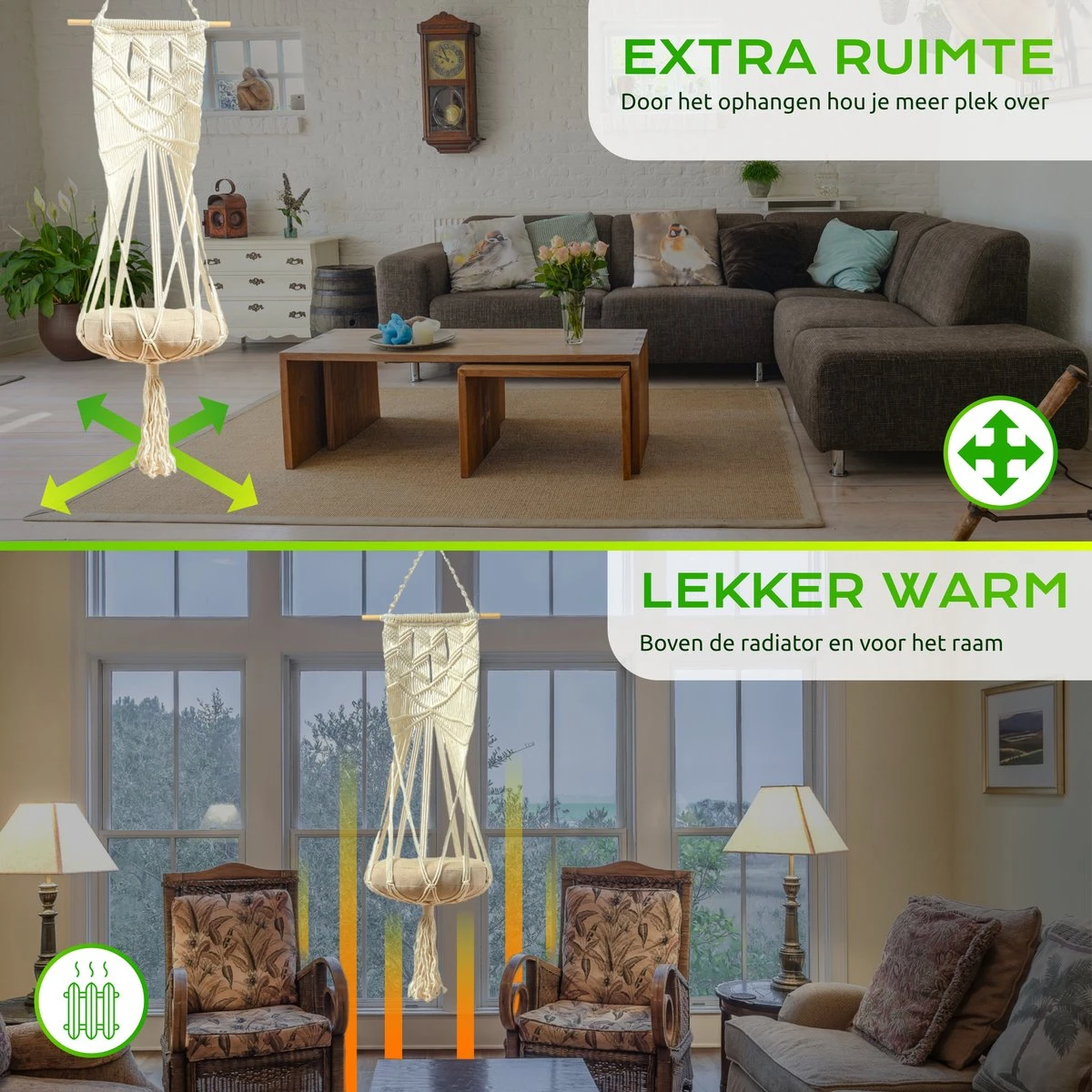 Qoods Kattenhangmat Macramé – Hangende Kattenmand Raam Of Radiator – Kattenbed – Poezenmand