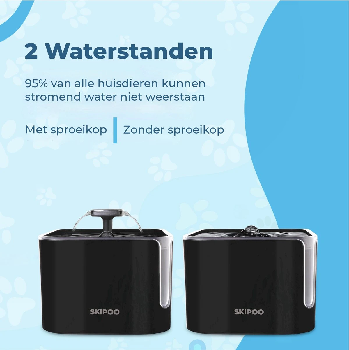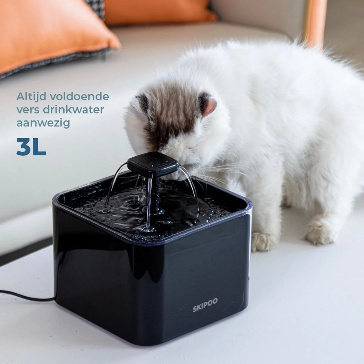 Voor de gezondheid van jouw huisdier is het ontzettend belangrijk dat ze genoeg schoon water drinken. De drinkfontein van Skipoo zorgt op een veilige manier dat jouw huisdier aan zijn dagelijkse hoeveelheid water komt. Het stromende water van de waterfontein prikkelt de zintuigen van jouw huisdier waardoor jouw huisdier meer zal drinken.