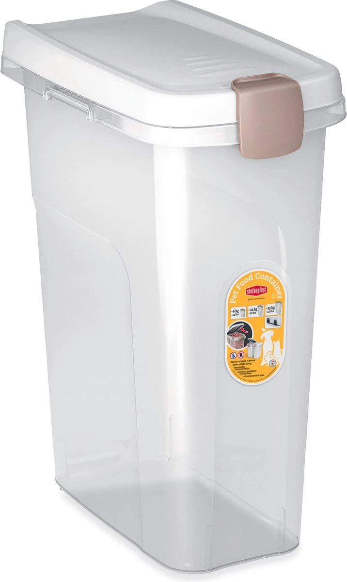 Voerton 25 liter transparant / wit voor circa 10 kg aan hondenvoer
