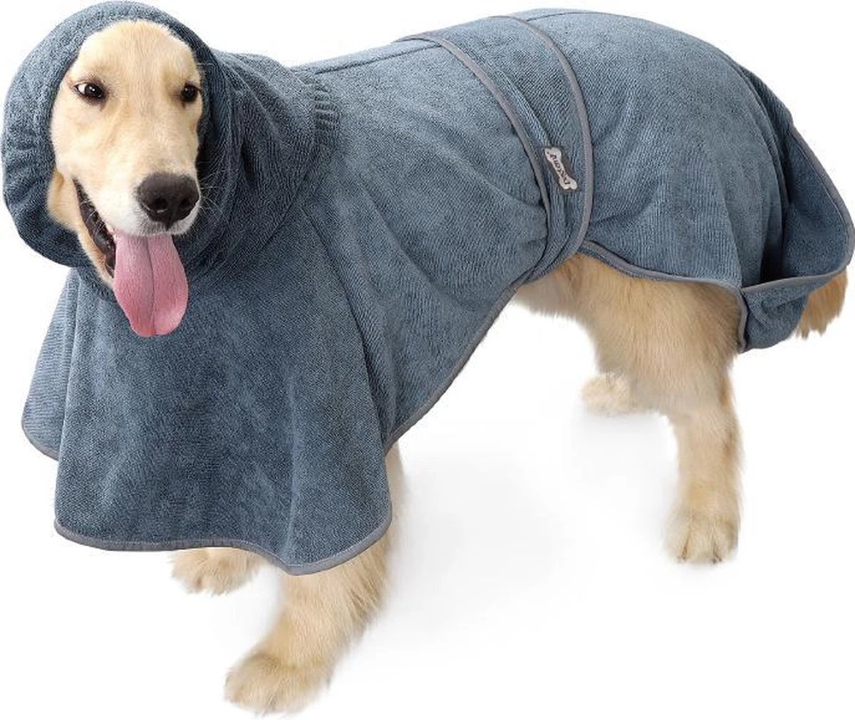 Na een wandeling in de regen of het spelen in de modder krijgt uw hond met de hondenbadjas geen kans meer om uzelf, de auto of iets in huis te bevuilen. Door de badjas bij uw hond aan te trekken na een activiteit waar water bij betrokken is, kunt u de microvezels in de badjas het werk laten doen. De badjas is voorzien van absorberende microvezels die het vocht in de vacht van uw hond absorberen.