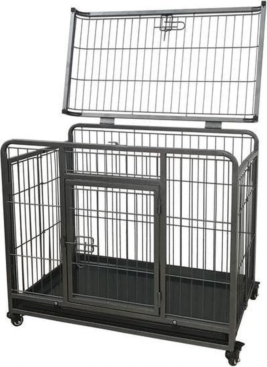 Extra stevige opvouwbare binnenhuis kennel met antraciet/grijs epoxy coating.