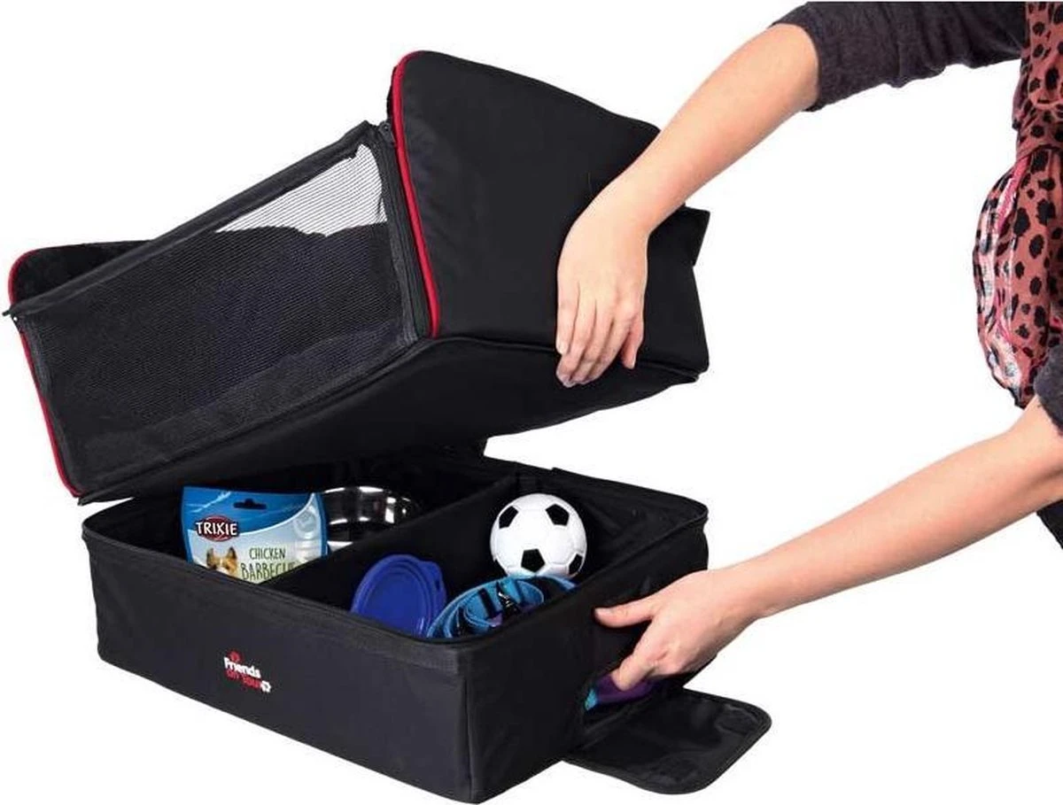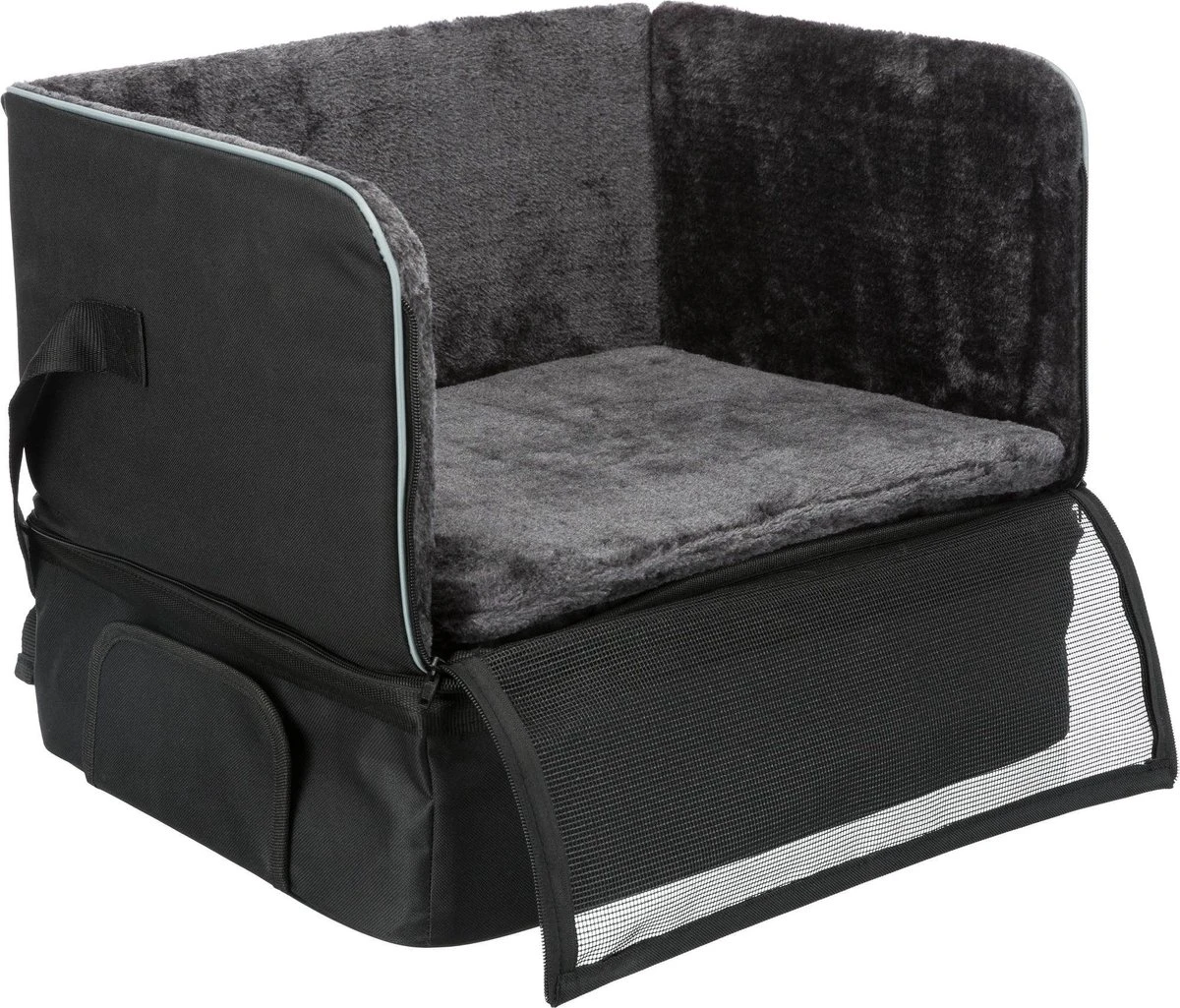 Met deze autostoel bezorg je jouw kleine viervoeter een comfortabele reis met de auto. De mand kan vastgemaakt worden aan de passagiersstoel en beschikt over een spleet waar de riem door heen kan om je hond vast te maken. De stoel heeft extra ruimte aan de onderzijde. Het mandje is gemaakt van nylon en heeft aan de binnenzijde een zachte stof. Ideaal voor korte en lange afstanden.