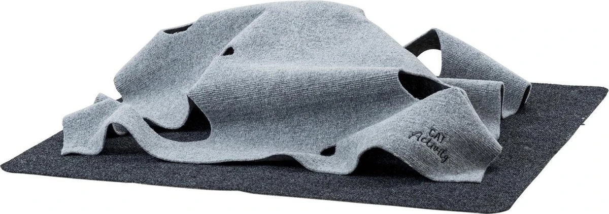 De kattendeken is gemaakt van polyester met een anti-slip thermoplastische rubberen (TPR) onderlaag. De speelmat is bestand tegen het krabben van katten, terwijl de grote gaten ervoor zorgen dat de kat er in en er uit kan gaan.