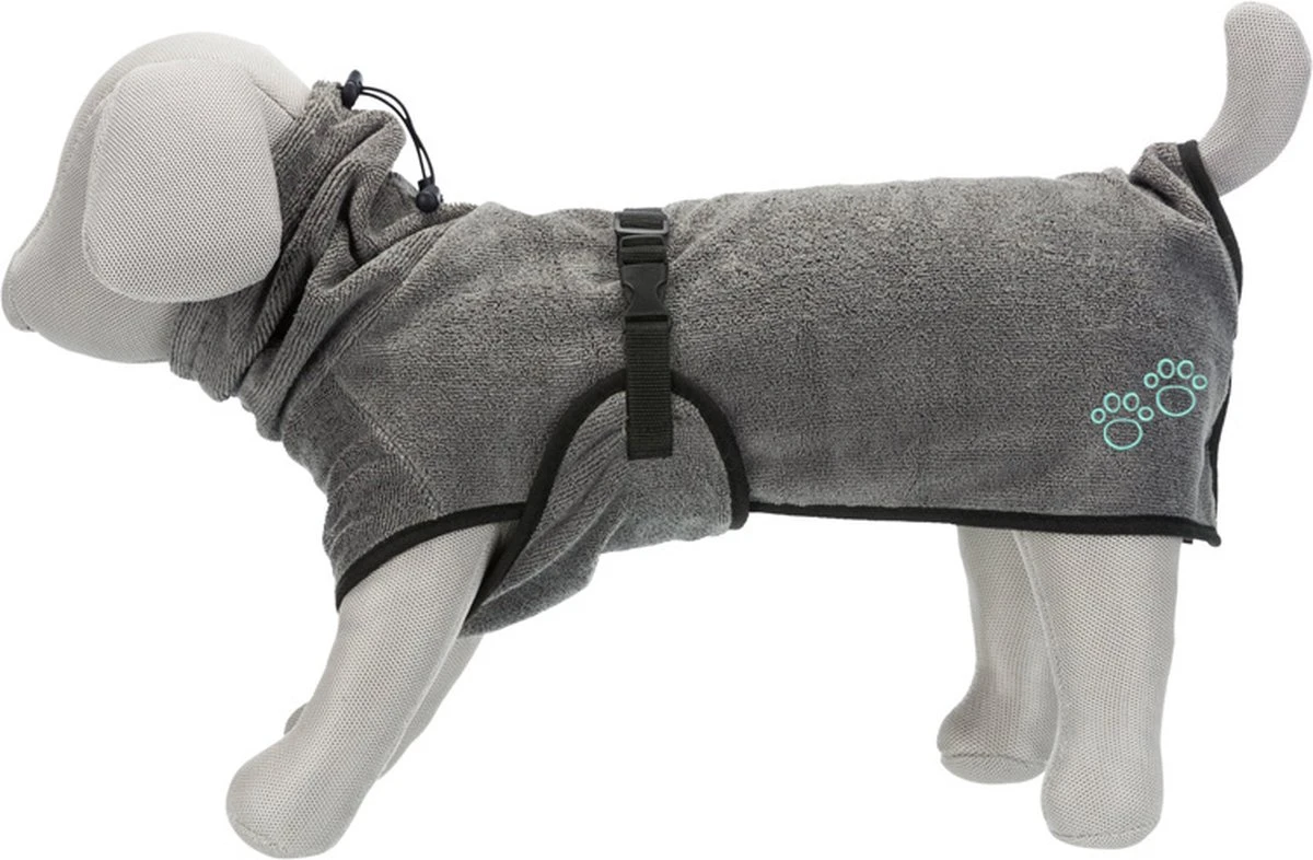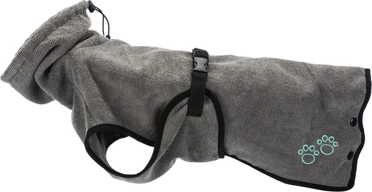 De Trixie Badjas is een hondenbadjas die de hond na het douchen of zwemmen droogt en beschermt tegen onderkoeling. Dankzij dit snel vocht absorberend materiaal is uw hond snel weer droog na een zwempartij, wasbeurt of wandeling in de pletsende regen.
