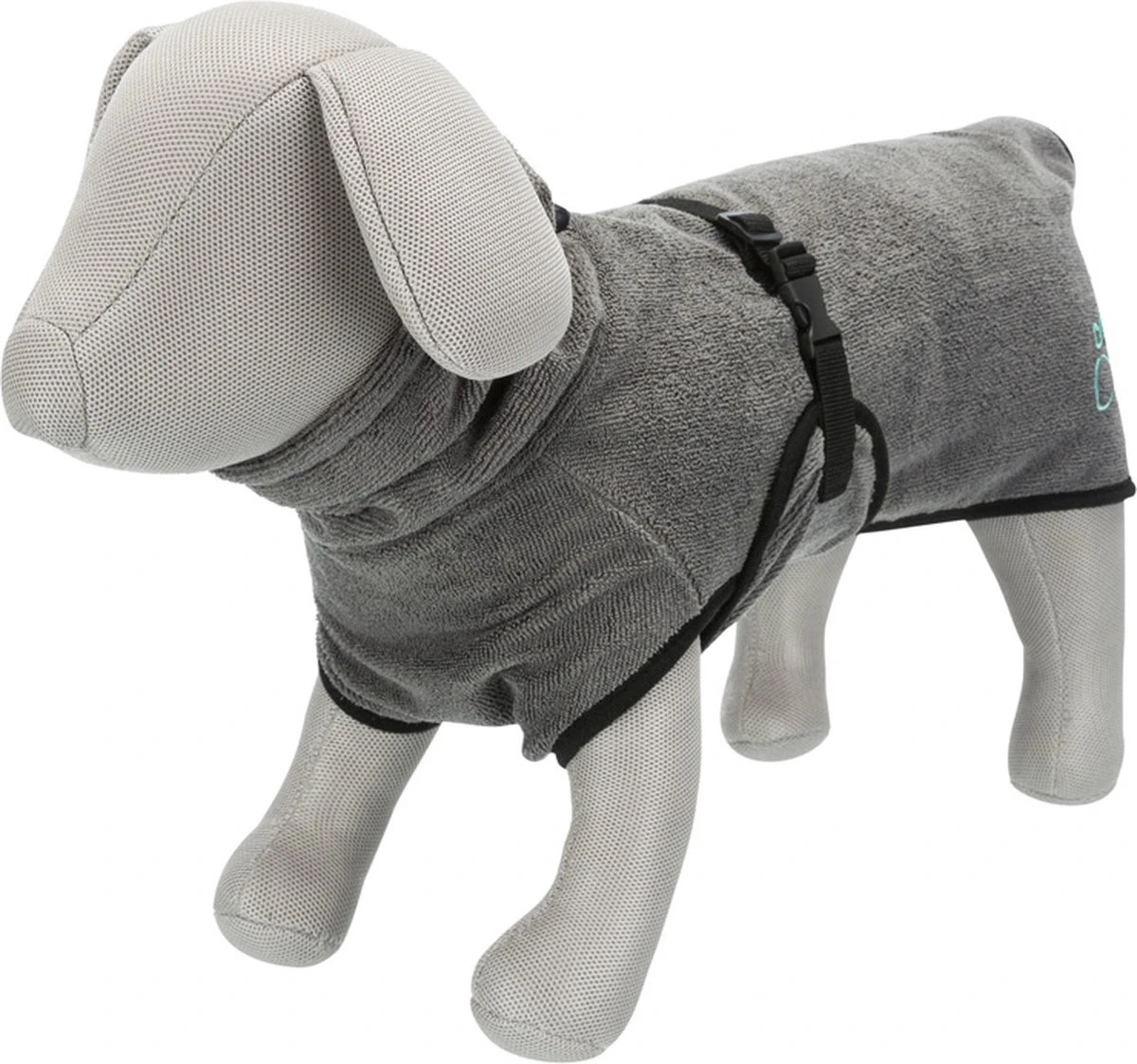 De Trixie Badjas is een hondenbadjas die de hond na het douchen of zwemmen droogt en beschermt tegen onderkoeling. Dankzij dit snel vocht absorberend materiaal is uw hond snel weer droog na een zwempartij, wasbeurt of wandeling in de pletsende regen.