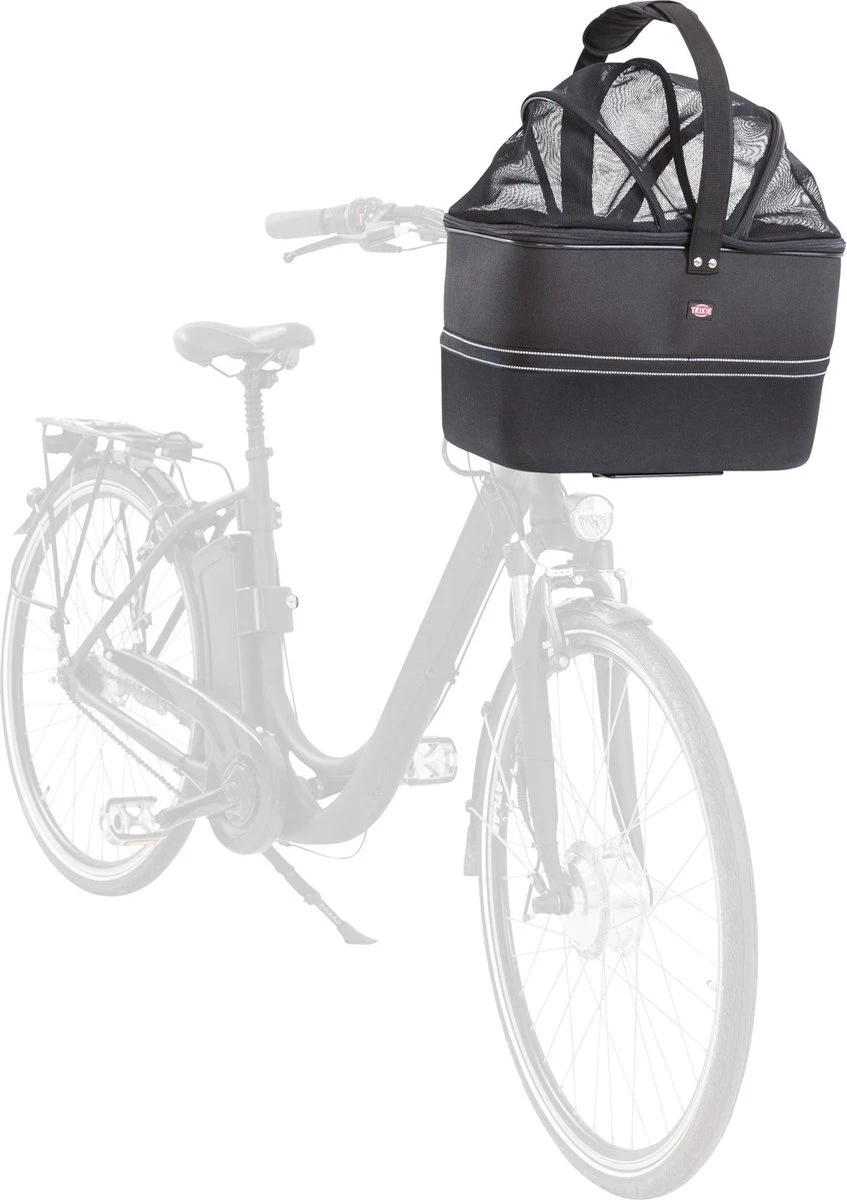 Deze Trixie Stuur Fietsmand Zwart 41 x 29 x 47 cm is een fietsmand voor op het stuur ideaal voor mensen die hun hond of kat graag mee op de fiets nemen.