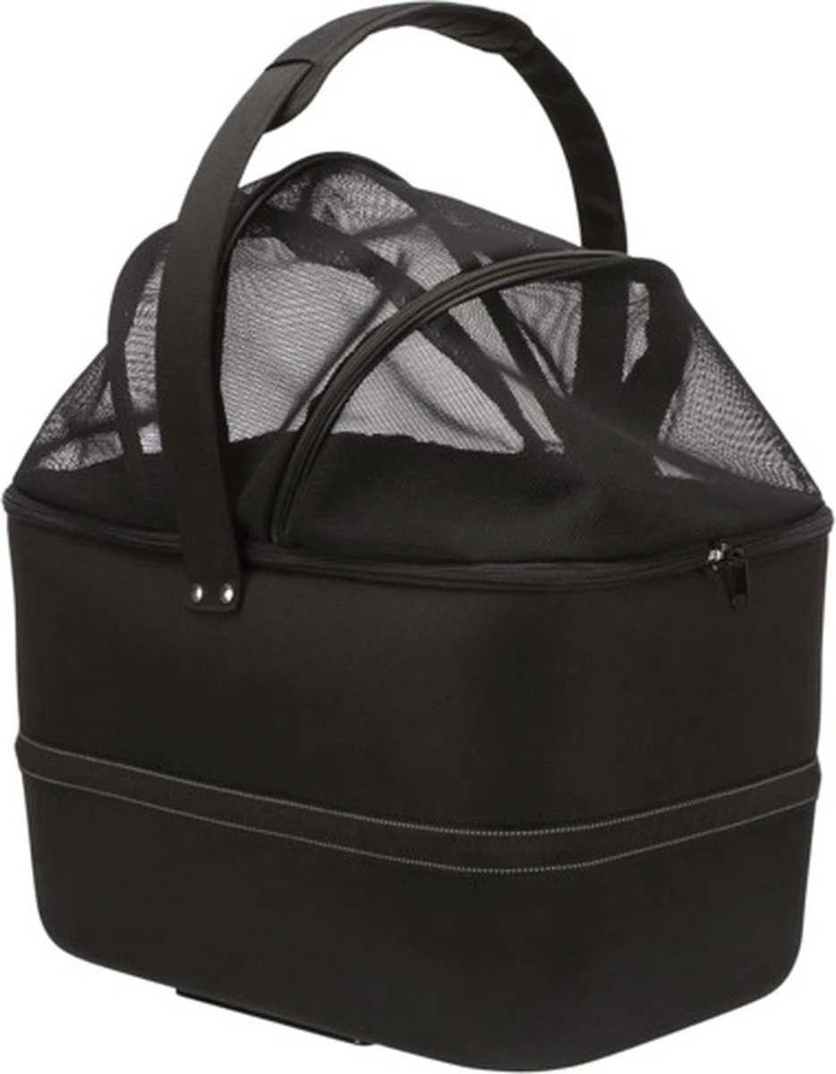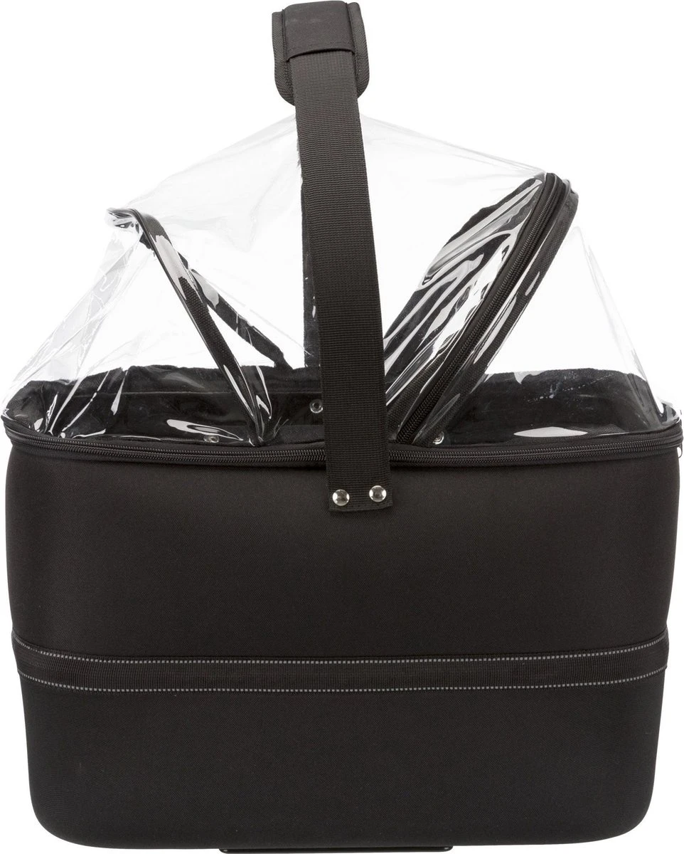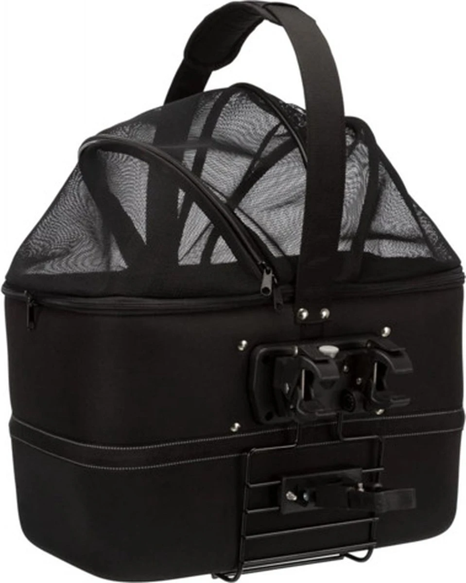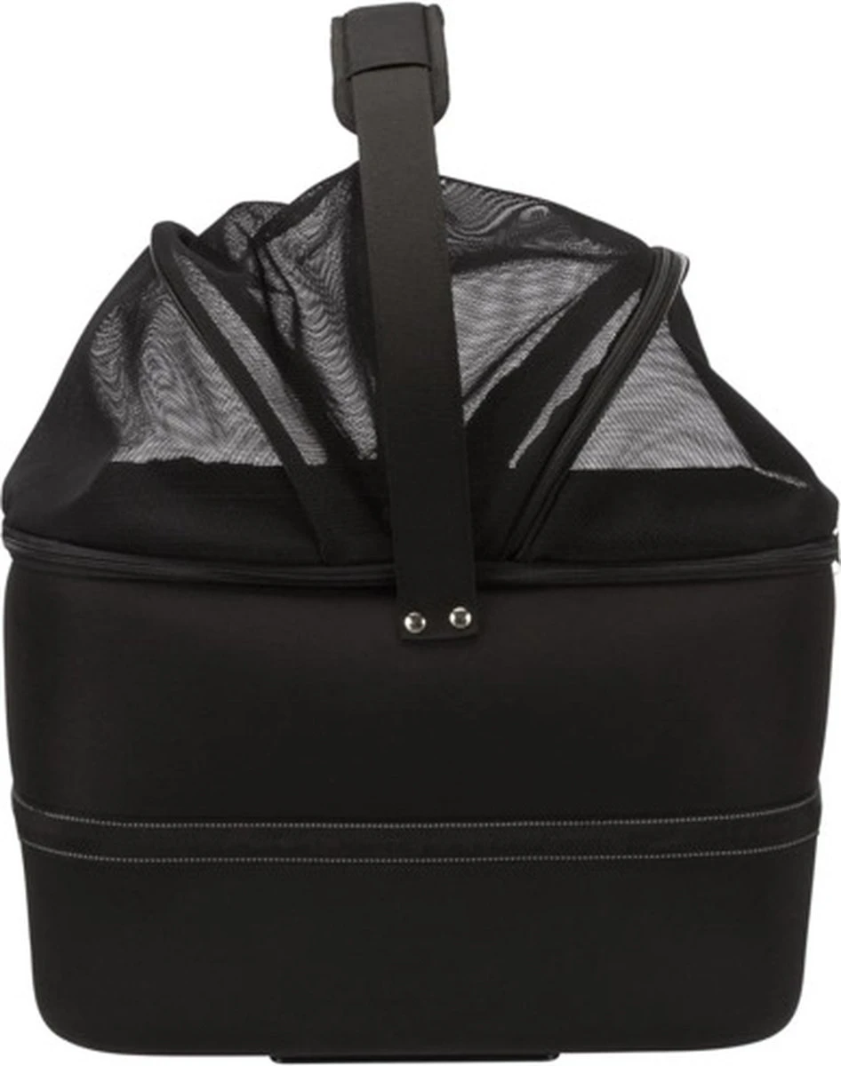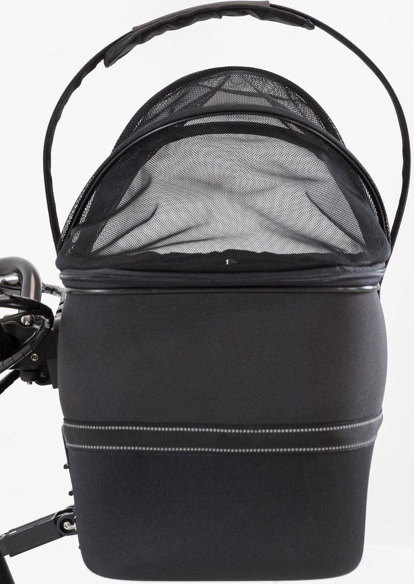 De mand is gemaakt van vormvast EVA met een gaasafdekking, die zorgt voor een goede bescherming. Het dier kan zo niet uit de mand springen en toch wordt er voor een goede luchtcirculatie gezorgd. Ook heeft de mand een regenkap voor reizen bij slechte weersomstandigheden. En heb je de afdekking toch liever open? Dan kun je jouw dier vastmaken aan de geïntrigeerde korthouder, zodat de hond of kat lekker om zich heen kan kijken zonder dat hij uit de mand springt.