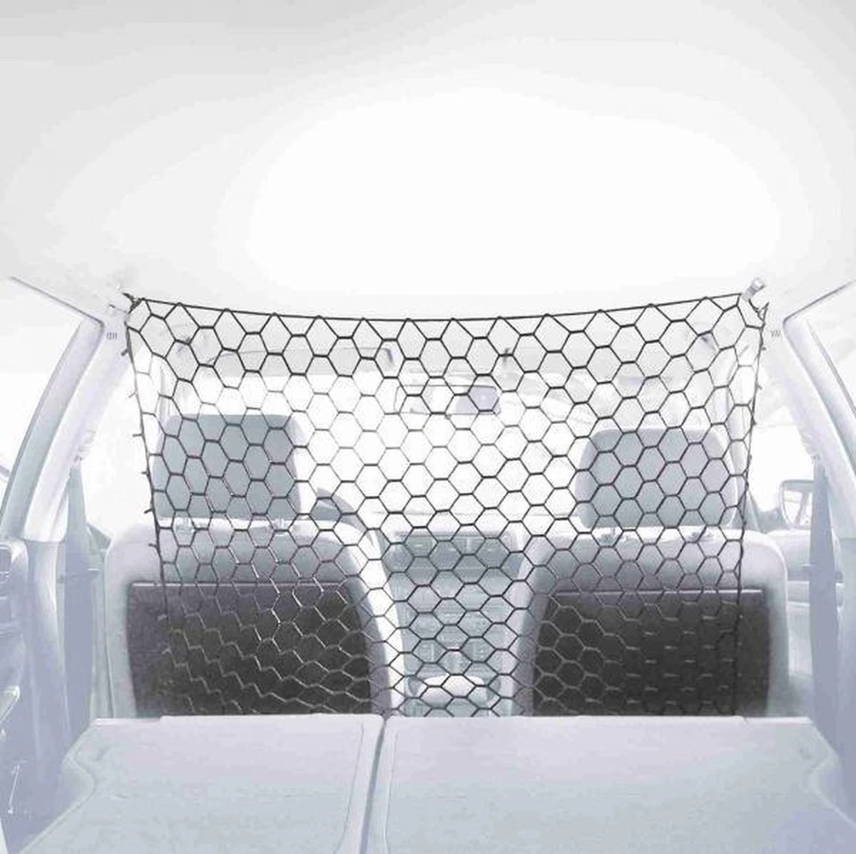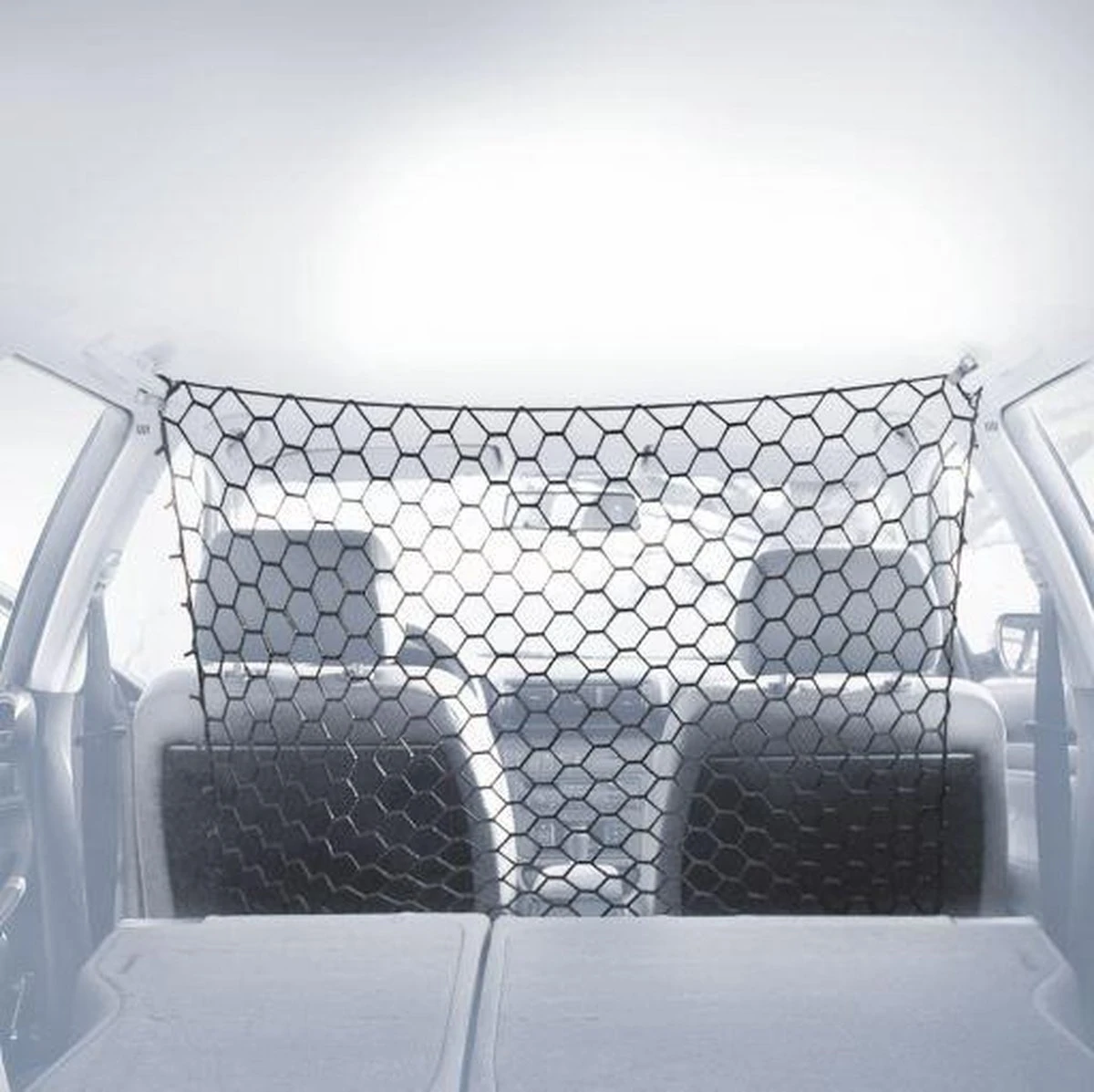Trixie Net Voor Auto Zwart 120 x 100 cm Het Trixie Net Voor Auto Zwart 120 x 100 cm is een handig net van polyetheen dat voorkomt dat de hond onderweg in de auto naar voren kan klimmen. Zo reis je veilig voor mens en dier! Het net heeft verschillende bevestingsmogelijkheden, bijvoorbeeld aan het jashaakje of de handgreep aan de autohemel. Het net is gemaakt van polyetheen en zorgt voor een afscheiding tussen de voor- en achterbank van de auto. Hierdoor zorg je ervoor dat de hond op de achterbank blijft en niet naar voren kan klimmen tijdens het rijden. Zo voorkom je afleiding en daaruit voortkomend gevaar tijdens het rijden. Omdat het net open van structuur is, kan de hond er wel door naar voren kijken: zo voorkom je paniek en onrust voortkomend uit een afgesloten gevoel! – Handig autonet van Trixie van polyetheen – Voorkomt dat de hond tijdens het autorijden naar voren kan klimmen in de auto – Veilig reizen voor mens en dier – Gemakkelijk en zonder gereedschap te bevestigen aan bijvoorbeeld handgrepen of jashaakjes – Door de open structuur kan de hond naar voren blijven kijken Afmetingen: 120 x 100 cm