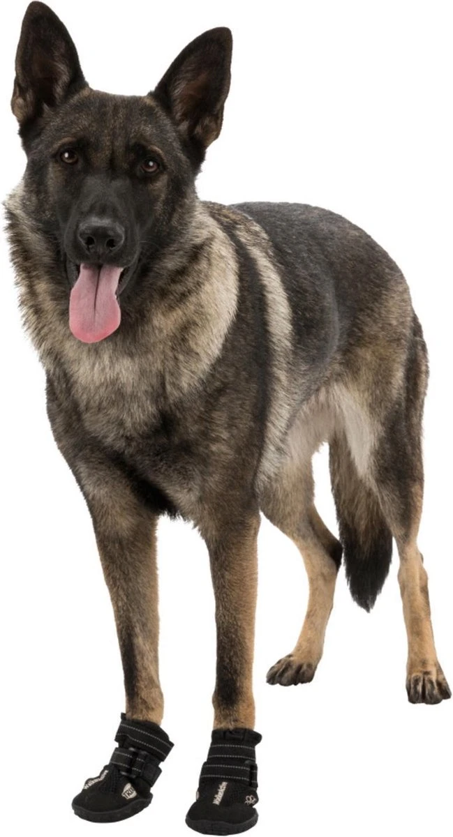 Hoewel de voetzolen van een hond gebouwd zijn om verschillende weersomstandigheden te doorstaan, kan het soms toch nodig zijn om hem te ondersteunen. Denk bijvoorbeeld aan de winter wanneer er strooizout en gruis op de weg ligt of in de zomer wanneer het asfalt erg heet is. De Schoentjes Active Walker van Trixie zijn fijne pootbeschermers voor je hond.