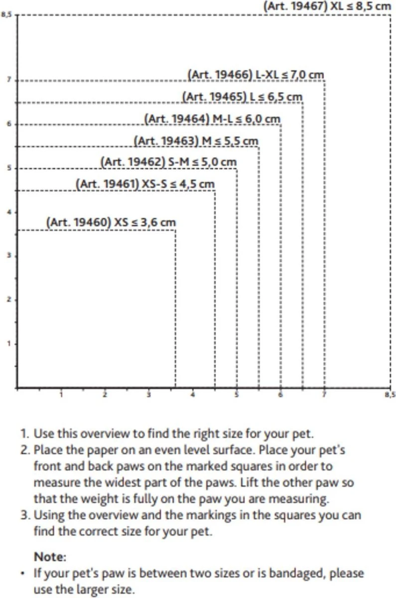 De Schoentjes Walker Active bevat 2 schoentjes, ze zijn zwart van kleur en zijn verkrijgbaar in verschillende maten, bijgevoegd een indicatie van de hondenrassen: