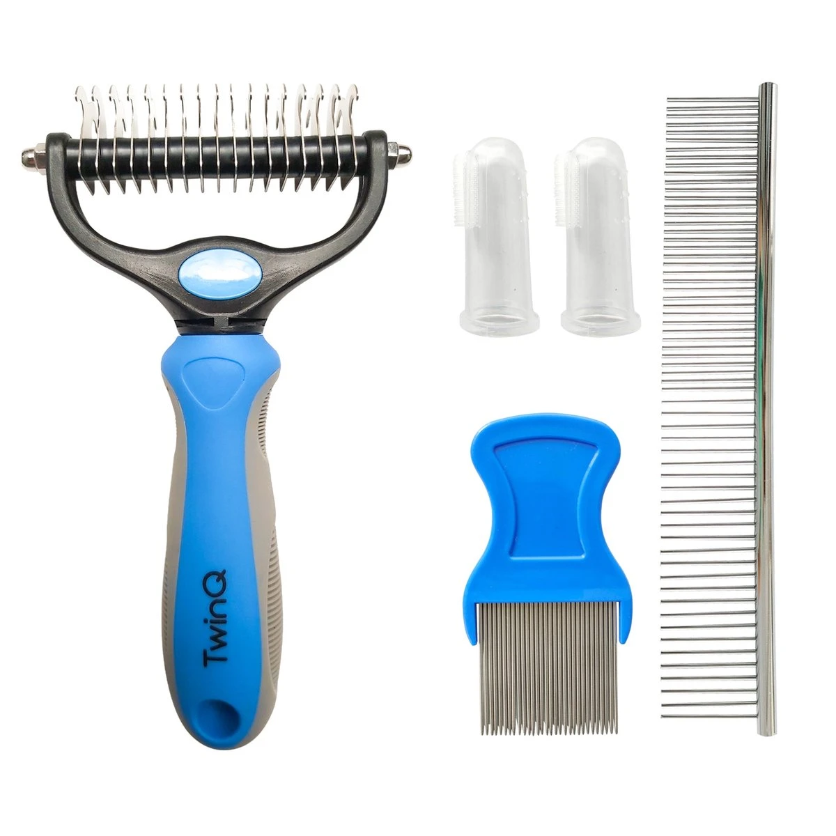 Heeft uw hond of kat last van vervelende klitten? Geen probleem! Met deze professionele vachtverzorgingsset van TwinQ is dit verleden tijd. Dankzij de afgeronde messen kunt u de ondervacht in een paar minuten met de hondenkam/kattenkam verwijderen zonder dat uw harige vriend hier last van heeft. Je zult verbaasd zijn hoeveel ondervacht u uit de vacht van uw hond of kat haalt!