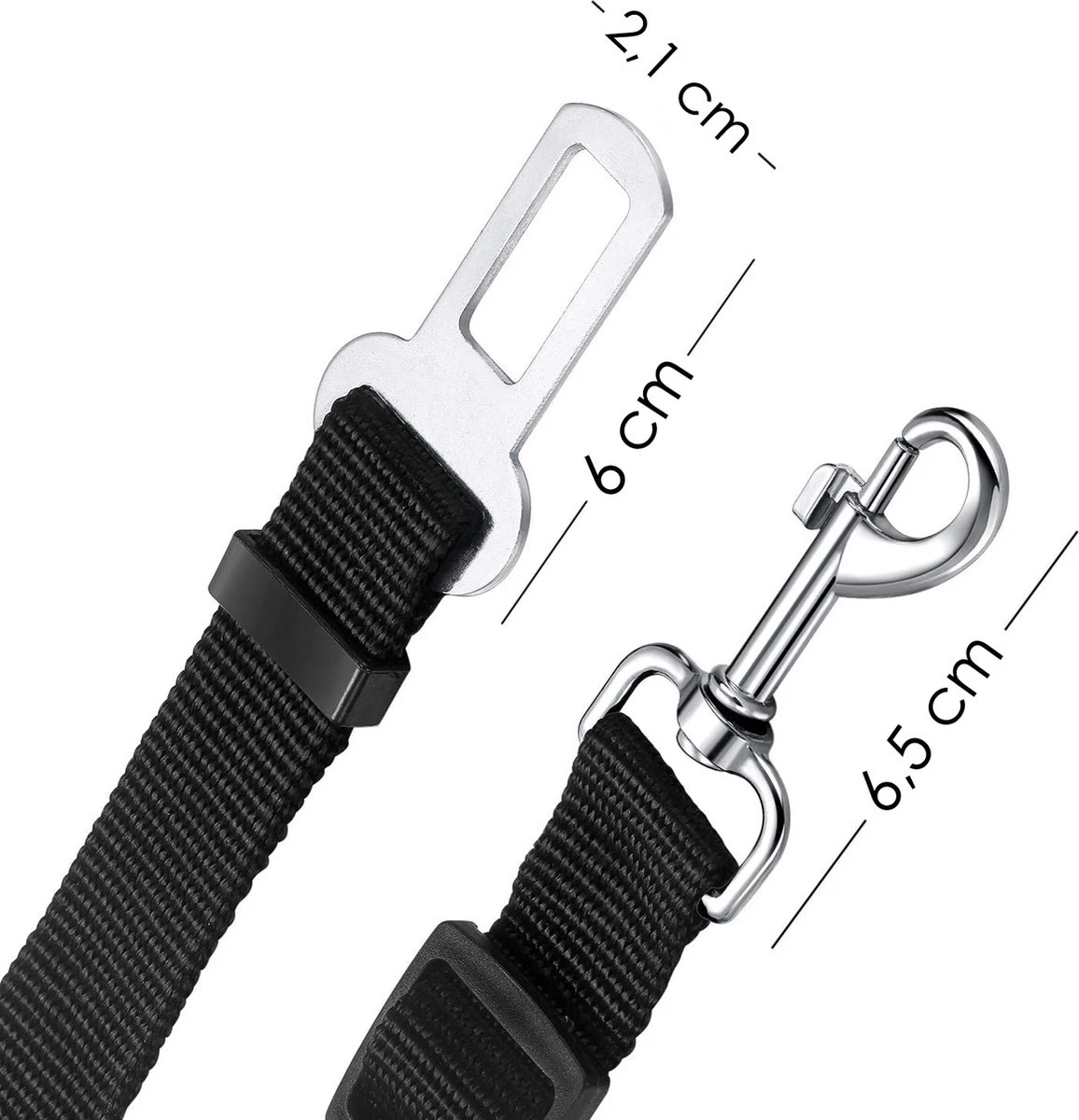 De zwarte autogordel voor hondentuig van Nomfy garandeert een veilige reis voor jou, je hond en andere weggebruikers. Doordat de hondenriem auto in lengte verstelbaar is, kan deze voor zowel grote als kleine honden gebruikt worden. Verschillende lengtes van de hondengordel en de roterende karabijnhaak zorgen voor optimaal comfort en veiligheid voor je hond tijdens een autorit. Je trouwe viervoeter kan gemakkelijk gaan liggen, zitten of staan, zonder onderweg gevaar te veroorzaken. Gebruik de hondenriem eenvoudig door de karabijnhaak aan de halsband van je hond te bevestigen en de andere kant in de veiligheidssluiting in je auto te klikken. Twee simpele stappen en je bent klaar om te gaan! Deze hondenriem autogordel is niet geschikt voor de auto’s van het merk Volvo.