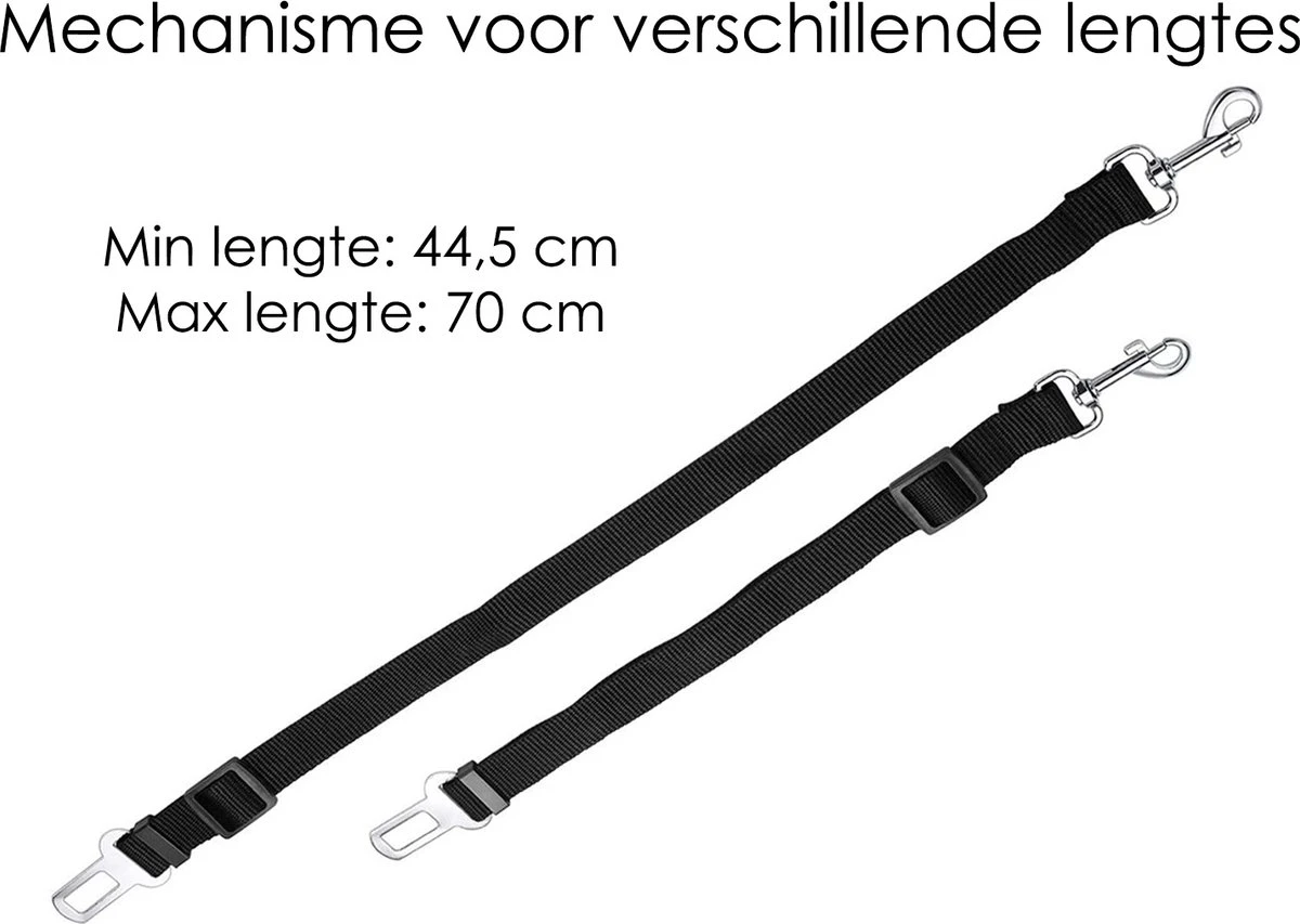 • Meer veiligheid onderweg • Comfortabele reis voor je hond • Te bevestigen in bijna elke auto (niet geschikt voor Volvo’s) • Verstelbare lengte: 43-72 cm