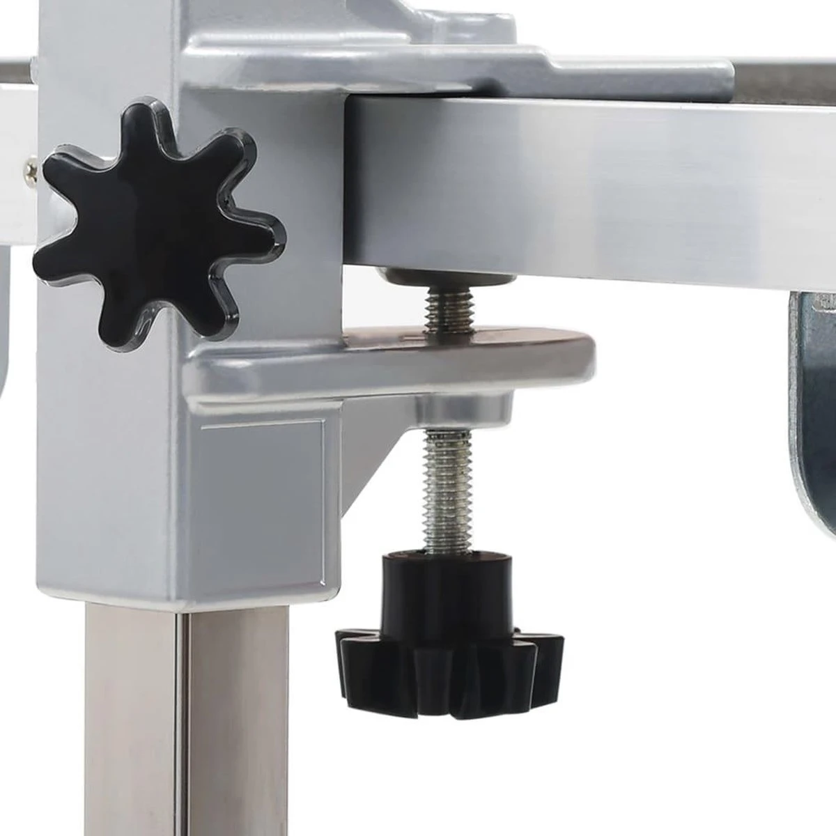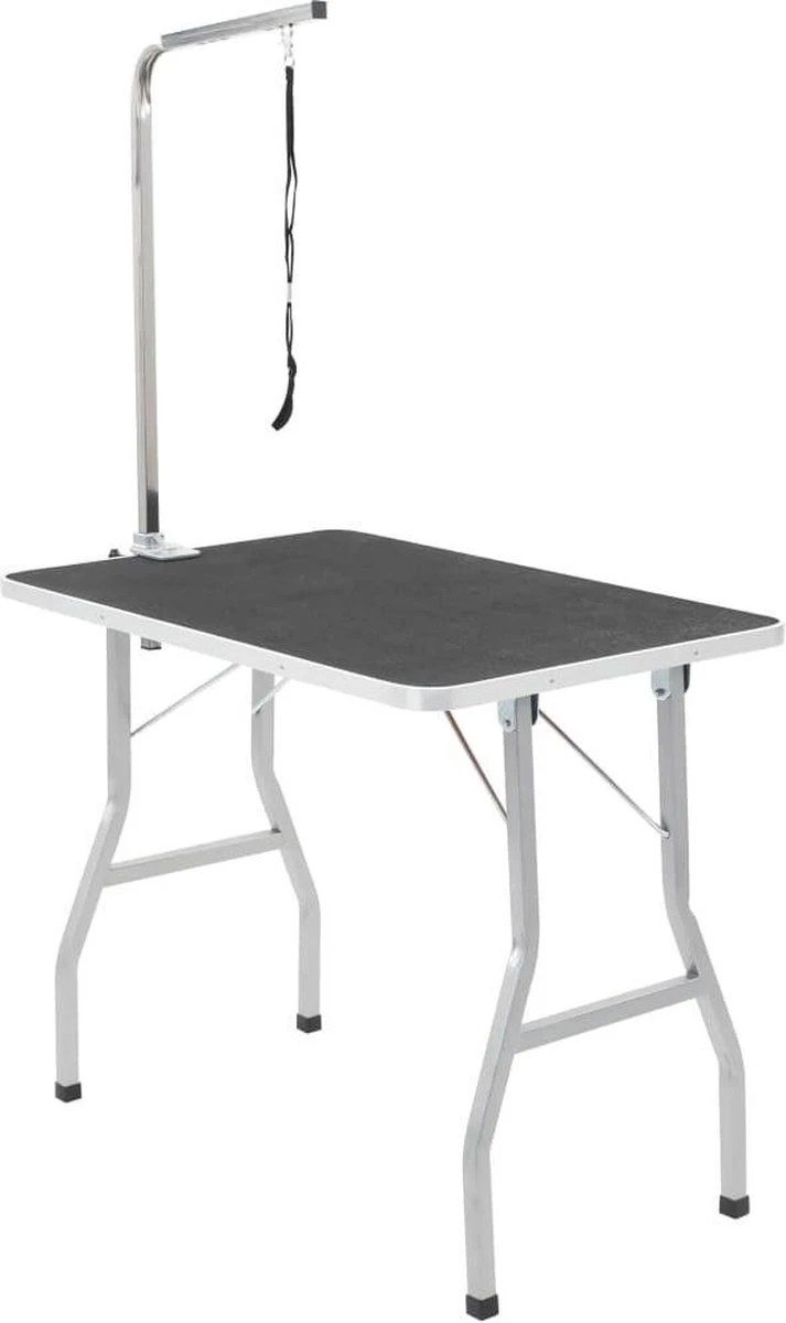 De verzorgingstafel is perfect voor trimmers die thuis of elders, bijvoorbeeld bij hondenshows, dieren willen verzorgen. De trimtafel beschikt over een anti-slip tafelblad en een gepoedercoat ijzeren frame met een verstelbare trimarm en aanlijnlus. Deze professionele trimtafel is veelzijdig en maakt iedere trimsituatie comfortabeler. Het tafelblad van de hondentafel is voorzien van een anti-slip laag, met oog op de veiligheid van je huisdier terwijl deze op de tafel staat. De aanlijnoptie is in hoogte verstelbaar en eenvoudig af te koppelen na gebruik, de trimtafel is gemakkelijk op te bergen dankzij het inklapbare onderstel. Bovendien neemt de trimtafel weinig ruimte in beslag wanneer u deze na gebruik weer opbergt. De tafel is met zijn ergonomische ontwerp in zijn geheel in hoogte verstelbaar. Levering bevat 1 x trimtafel, 1 x aanklembare aanlijnarm en 1 x aanlijnlus.