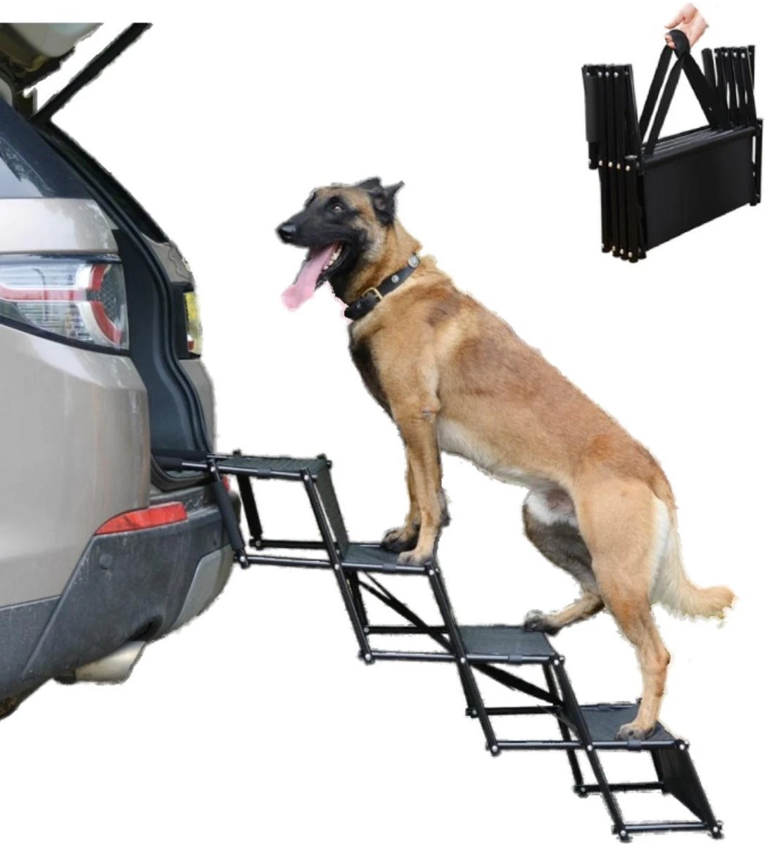 De Viervoetjes hondentrap is geschikt voor ELKE AUTO en gemakkelijk op te vouwen en op te bergen in de kofferbak.