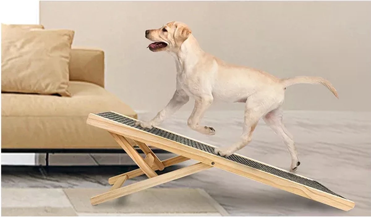 De Viervoetjes Houten Loopplank Voor Honden is het perfecte hulpmiddel voor honden die niet zomaar op hoogte kunnen of willen springen. De loopplank zorgt ervoor dat zij voortaan gemakkelijk op de bank of stoel kunnen klimmen zonder de gewrichten extra te belasten. De plank kan gemakkelijk opgevouwen en opgeborgen worden.