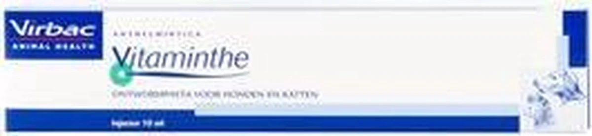 Vitaminthe is een oraal, breedspectrum anthelminticum in pastavorm voor honden en katten. Niclosamide is specifiek werkzaam tegen lintwormen en oxibendazol bestrijdt zowel volwassen als larvale stadia van spoelwormen, zweepwormen en haakwormen. De combinatie van beide werkzame bestanddelen in deze pasta, maakt Vitaminthe geschikt voor toepassing bij honden en katten van alle leeftijden.