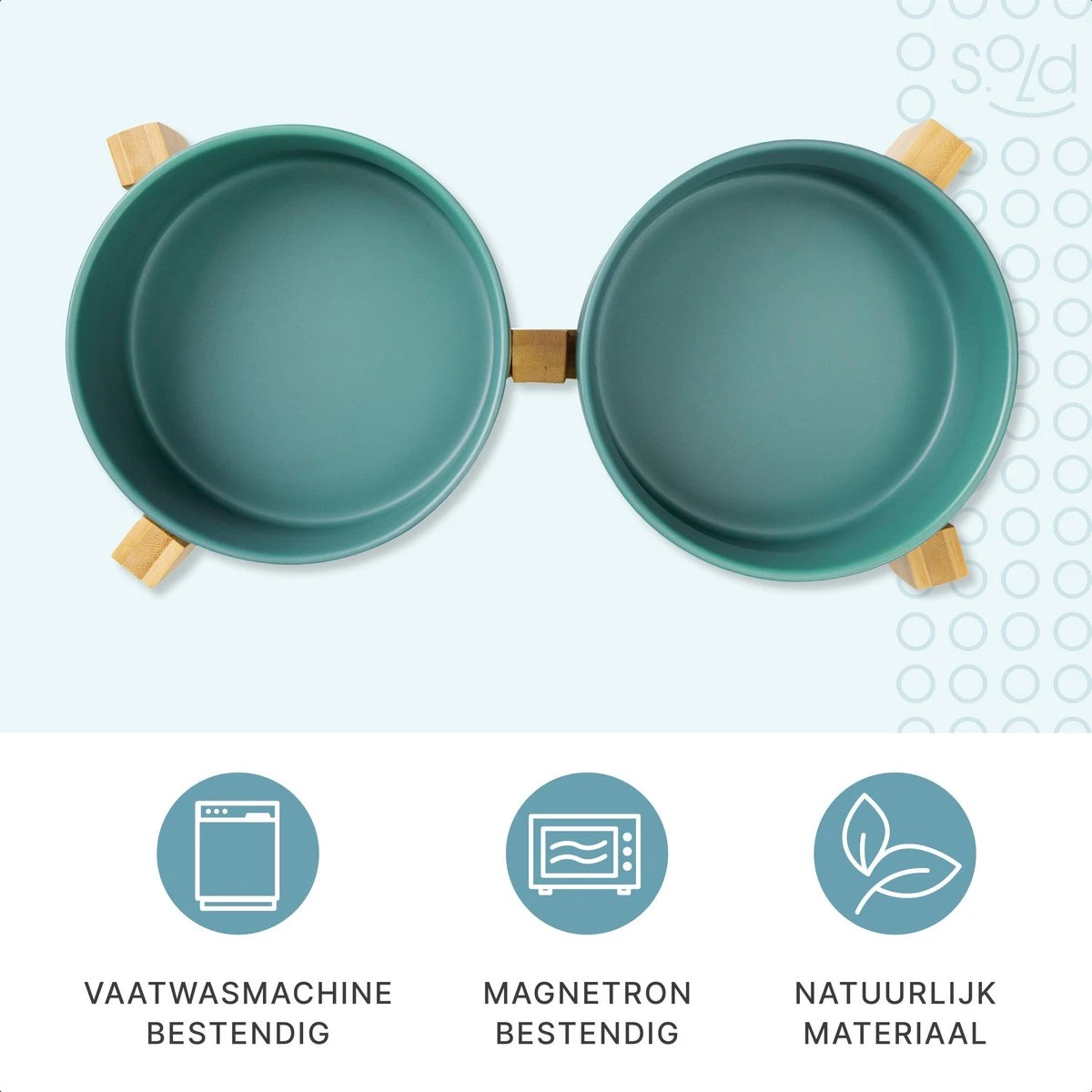 Deze stijlvolle dubbele voerbakken van S.old zijn een musthave voor iedere dierenvriend, máár ook voor diegene die van een stijlvol interieur houdt. De voerbakjes zijn gemaakt van een hoogwaardige kwaliteit keramiek en worden op hun plaats gehouden door een verhoogde bamboe houten standaard. Geen gedoe dus meer met wegschuivende voerbakjes.