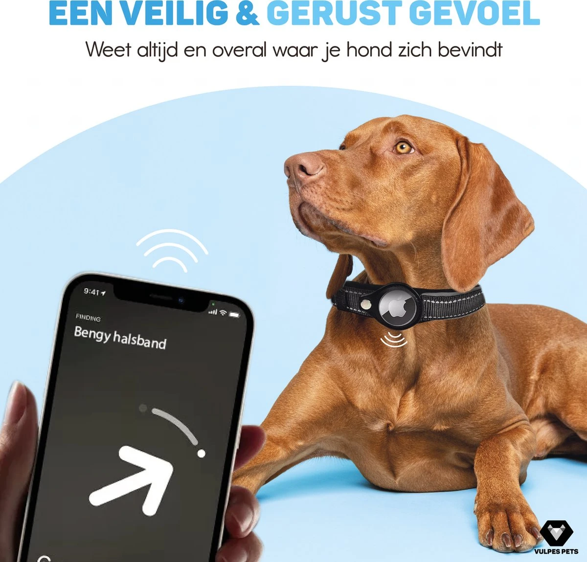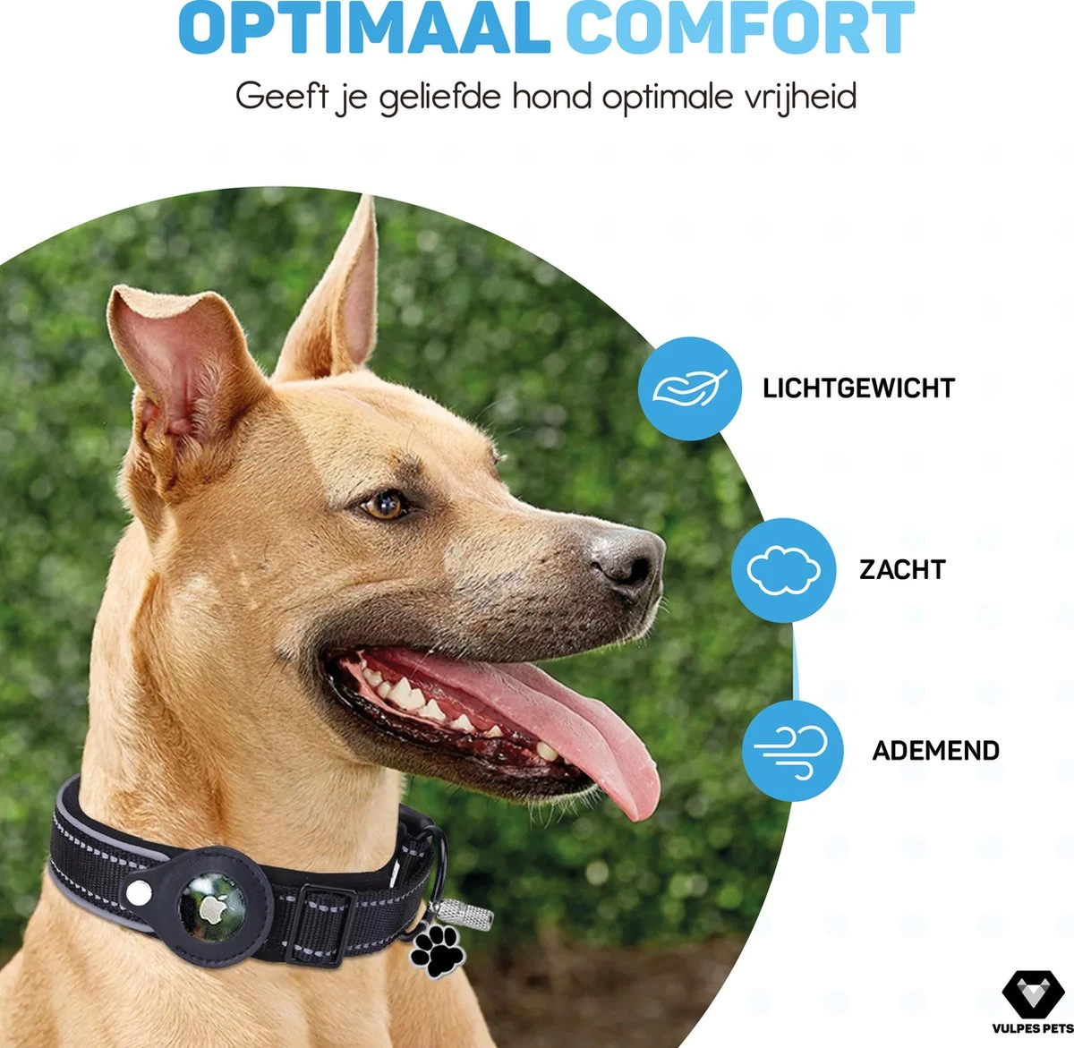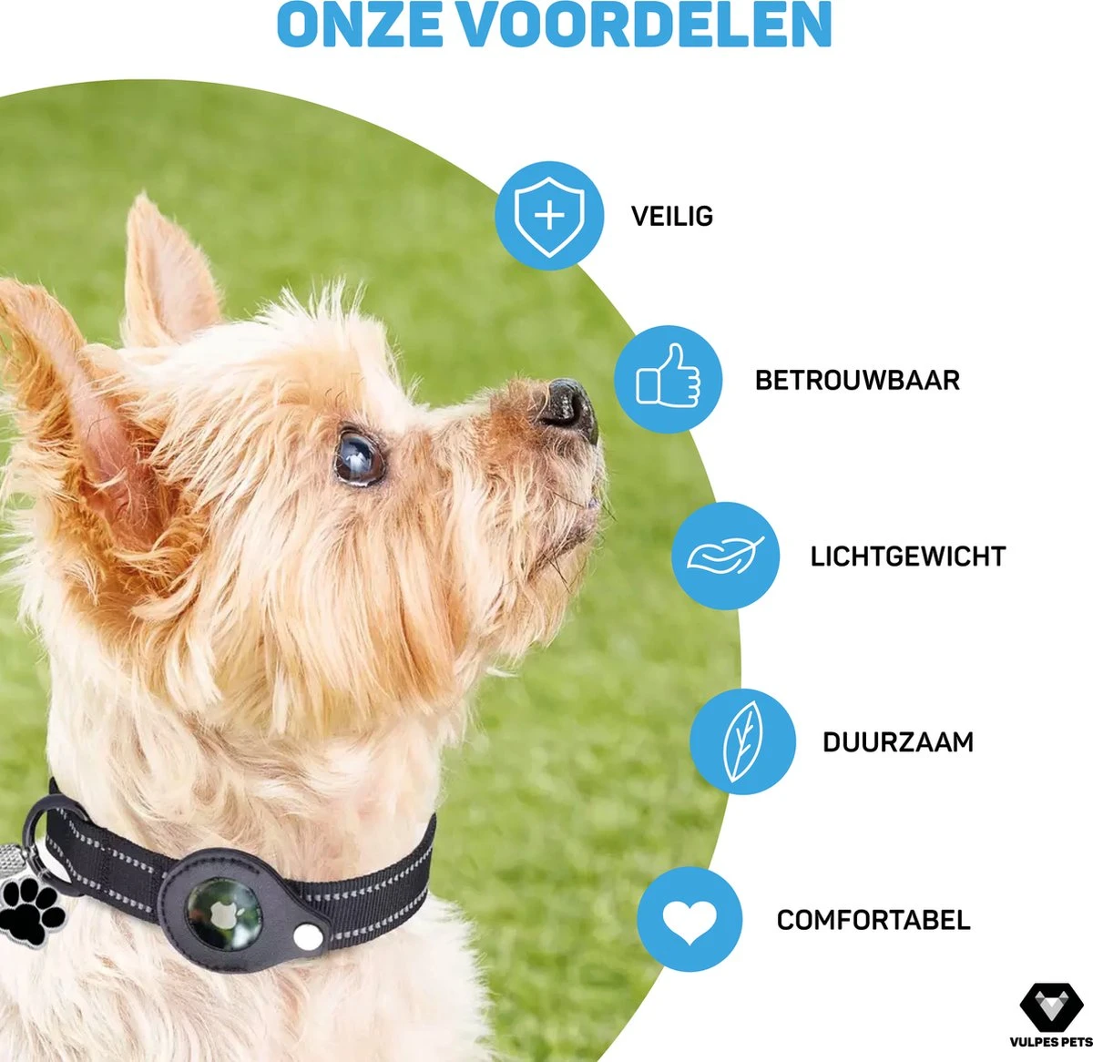 De halsband van Vulpes Pets® is speciaal ontworpen voor Honden en Apple AirTag. De halsband doe je om bij je trouwe viervoeter om er zo voor te zorgen, dat wanneer hij of zij kwijt is je hem of haar via Apple AirTag eenvoudig weer kunt opsporen of wanneer je nieuwsgierig bent naar waar je geliefde huisdier zich bevindt!