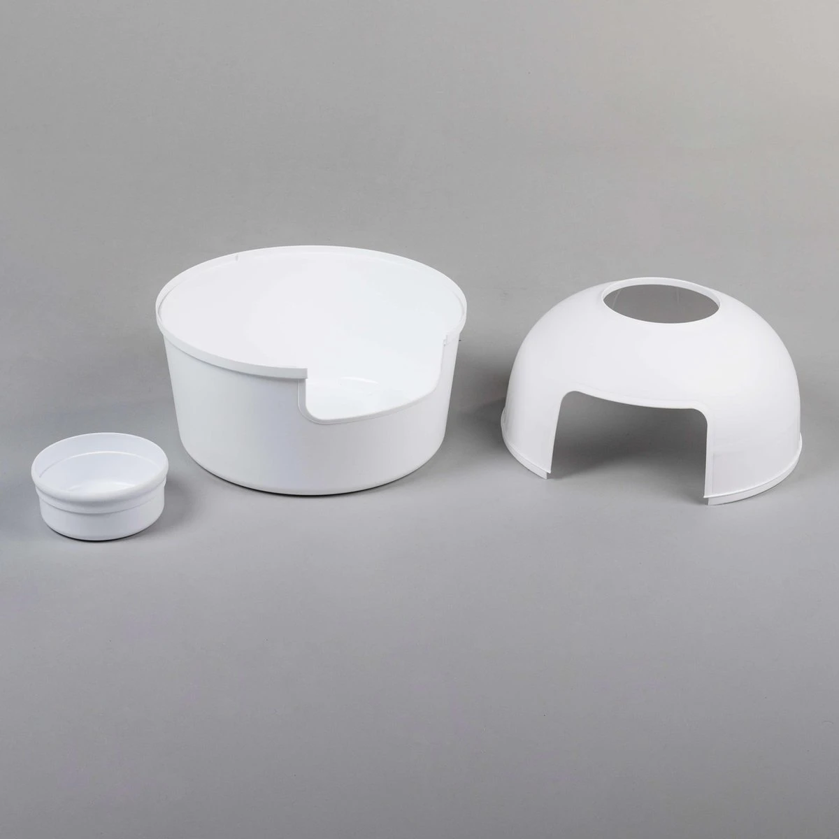 Door zijn ovale vorm, grote ingang en volledig afneembare bovenzijde is hij zeer eenvoudig schoon te maken en te monteren. De grote ingang maakt het mogelijk dat zelfs de grootste katten hier zeer gemakkelijk in en uit kunnen. Met een diameter van 51 cm en hoogte van 55 cm hoog doet deze kattenbak zijn naam, XXL, eer aan.