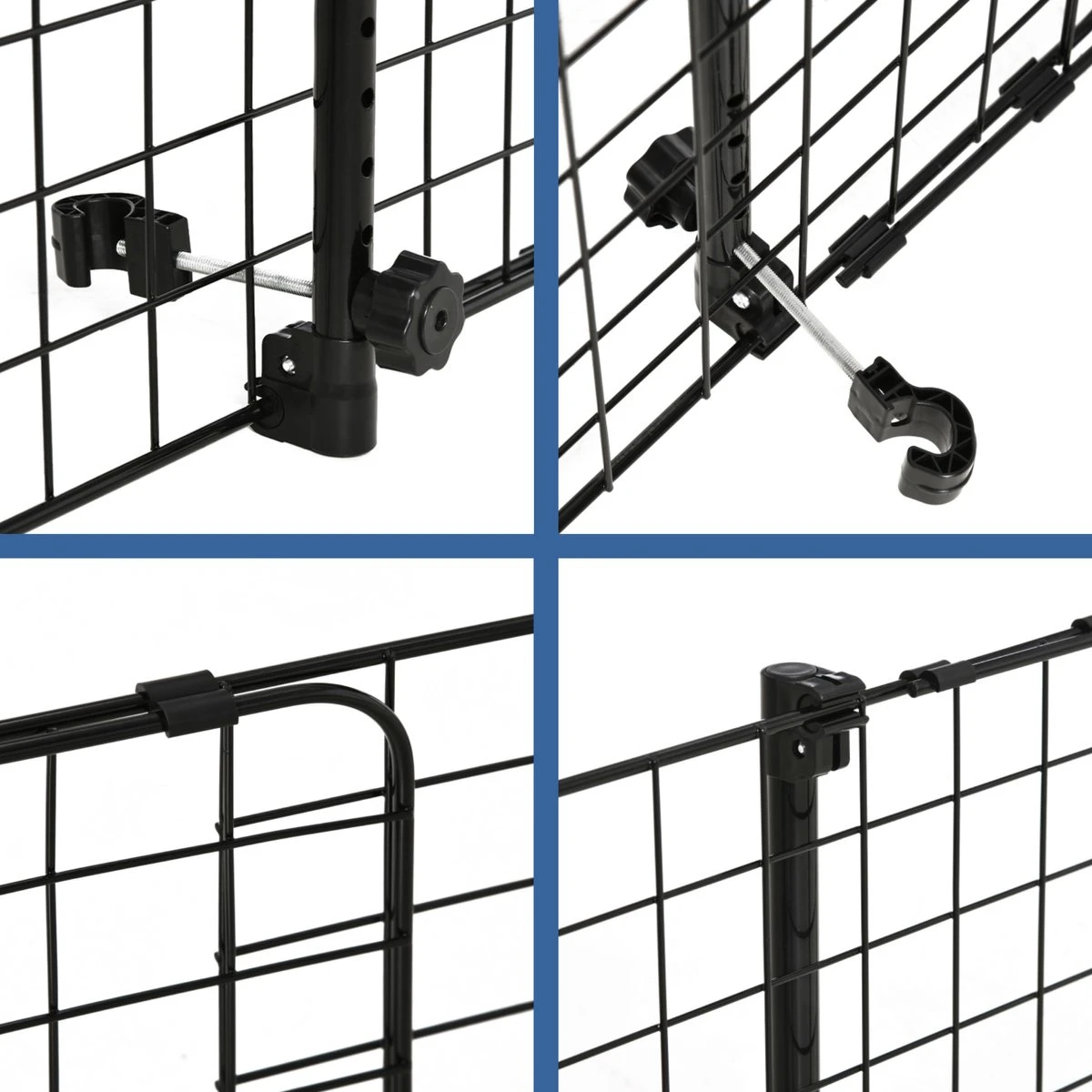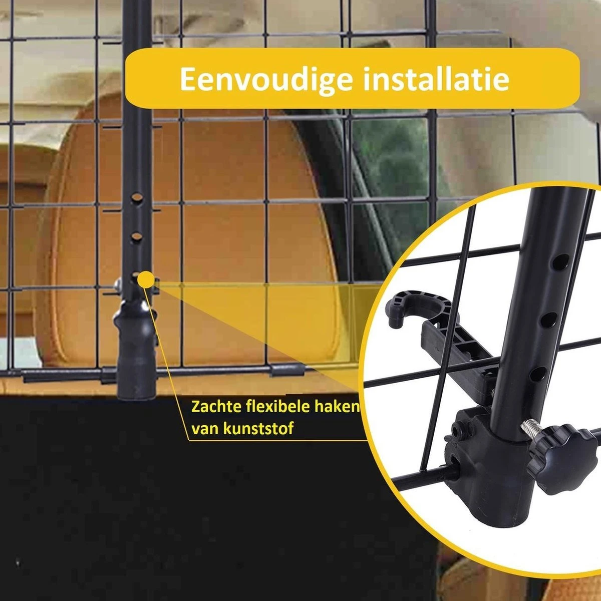 Met dit stevige universele hondenrek kun je je huisdier veilig in de auto vervoeren. Vanwege het grote aantal automerken met verschillende afmetingen bieden wij een universeel bagagerek. Het autorek kan traploos in de breedte worden aangepast en kan daarom individueel aan het betreffende voertuig worden aangepast. Het robuuste rooster is gemaakt van metalen buizen en heeft geen scherpe of uitstekende delen. Vanaf nu kun je je huisdier of bagage veilig in je kofferbak vervoeren.